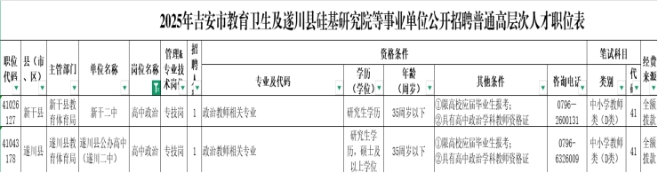 二、2025年吉安市教育卫生及遂川县硅基研究院等事业单位公开招聘普通高层次人才公告