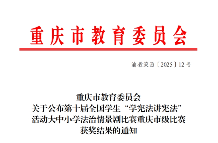 近日,重庆市教育委员会公布了第十届全国学生“学宪法 讲宪法”活动大中小学法治情景剧比赛重庆市级比赛获奖名单,我院两支学生团队作品分别荣获二、三等奖。其中,由学院张建军、王现兵、蒋文静老师指导,李丹、张乐、董婉婷、张瀚兮等学生创作的作品《兴衰商途:法律护航创业路》荣获全市高校组二等奖;由学院吴成国、陈昱宁老师指导,路康雄、董欣、牟姝睿、张潇月等学生创作的作品《抉择的天平》荣获全市高校组三等奖。